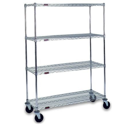These heavy duty, zinc-plated steel units provide convenient, portable storage for linens, equipment, and other items. Units come with four shelves (two adjustable), poles, and four swivel casters (two with brake). Shipped unassembled.