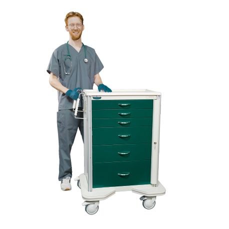 A-SMART Premier Key Locking 2-Tone Aluminum Carts come with your choice of 18 designer colors for the drawer fronts, set in a neutral beige frame. Features include: