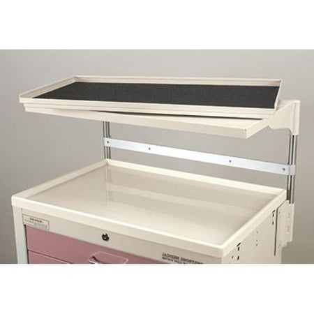 Adds 12" of height to cart. Swivel top can rotate 360 degrees. Includes strap to hold monitor.
