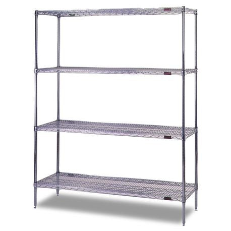 Convenient storage for supplies, linens, and equipment. Starter unit includes four posts and four 18" x 48" adjustable shelves.